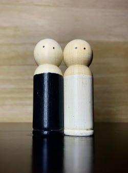 set van 2 handbeschilderde en afgelakte houten poppetjes van 7 cm in zwart en wit